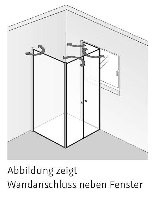 Duschtrennwand HSK Drehtuer mit Wandanschluss neben Fenster -