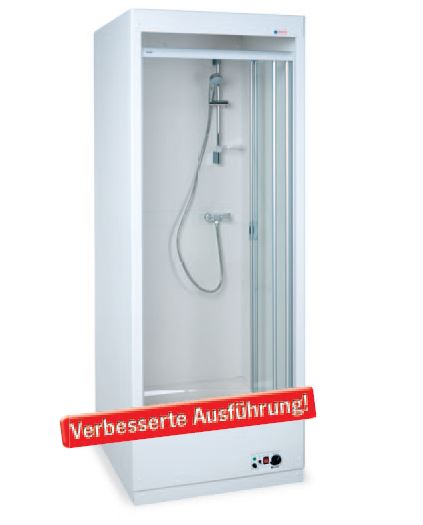 Fertigdusche SOUVERAEN mit 18-l-Warmwasserspeicher und Abwasserpumpe von hinten -