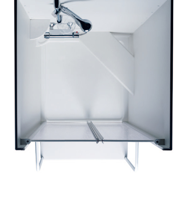 Auch der zusätzliche externe 25-l-Warmwasserspeicher zählt zu den besonderen Extras dieser neuen anspruchsvollen Fertigdusche SENIOR.