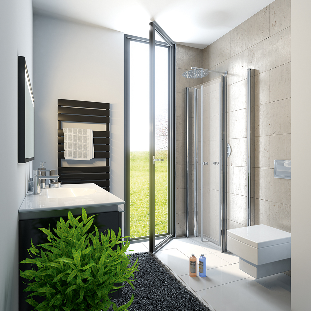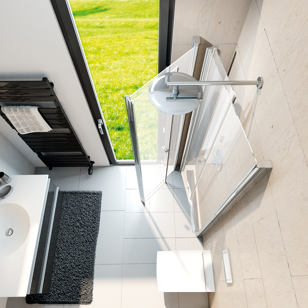 Wer kennt sie nicht, kleine oder unglücklich geschnittene Bäder in denen die Wände neben Fenstern, Türen oder Heizkörpern einfach nicht ausreichen für eine eigenständige Duschkabine? Mit dem raffinierten Falt-Prinzip der neuen Exklusiv Profil-Drehfalttürlösung können Hindernisse einfach „umbaut” werden.