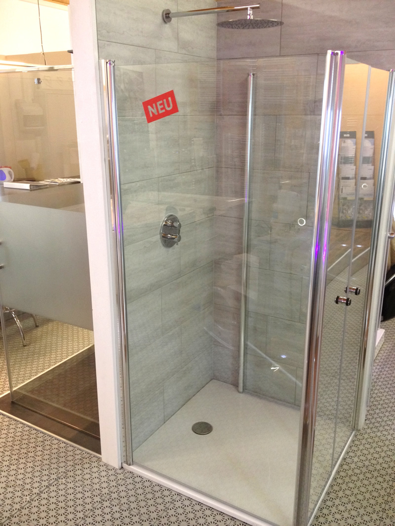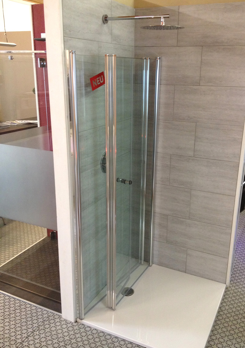 Ab sofort ist diese flexible Lösung bei uns in der Ausstellung zu besichtigen. Zusammen mit der neuen, fast ebenen Duschwanne PLAN ergibt sich so ein wunderschöner, barrierefreier Duschbereich - auch in kleinsten Bädern.