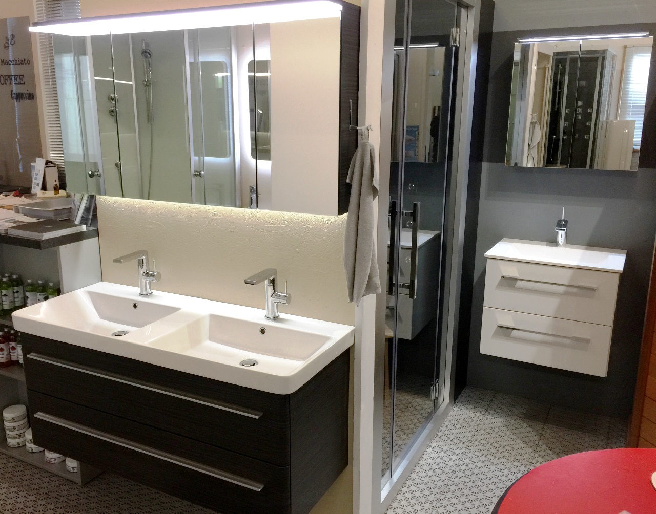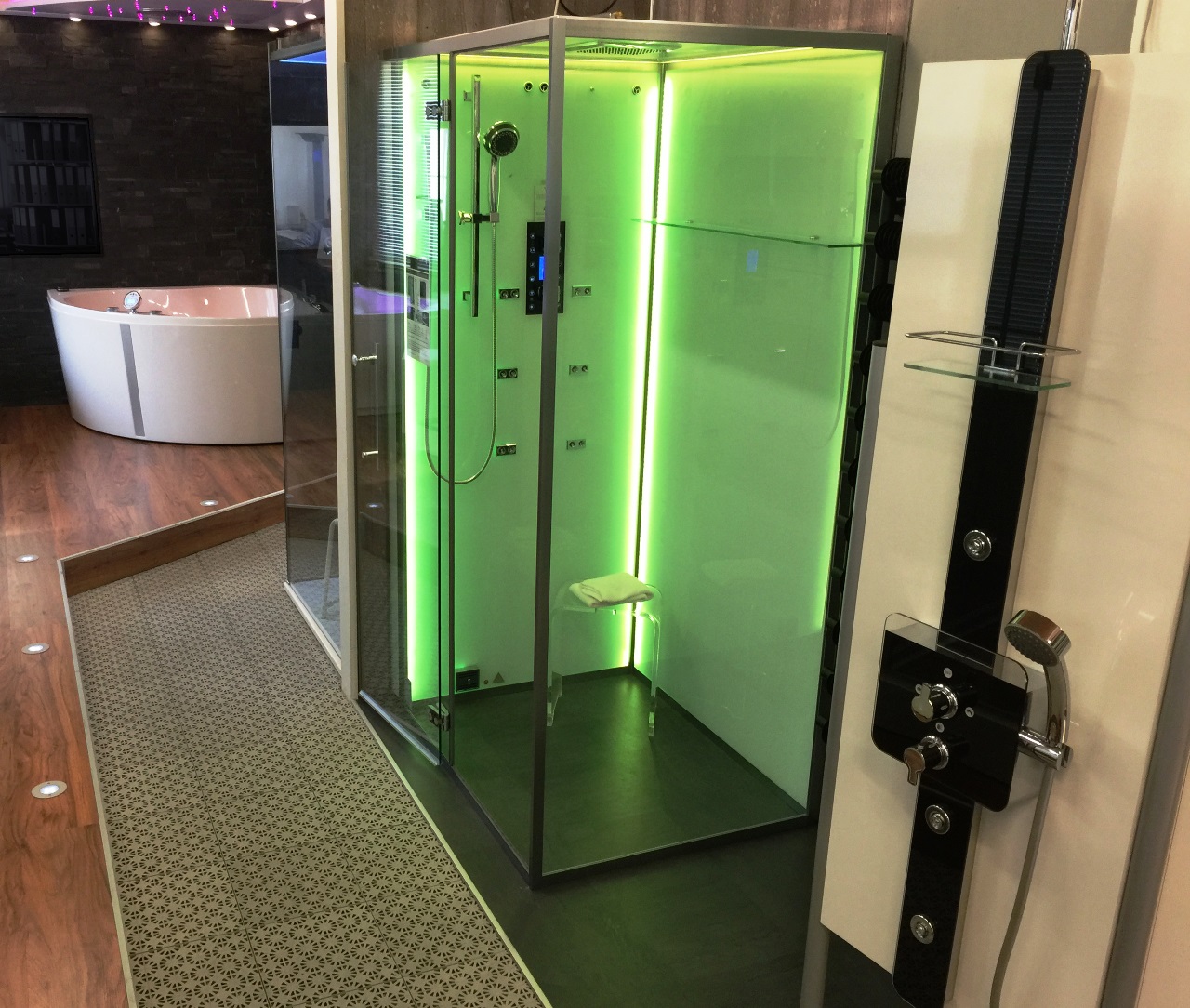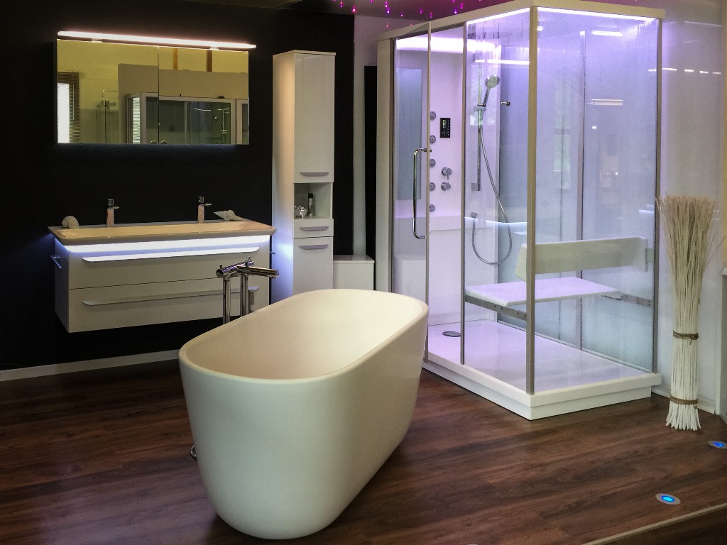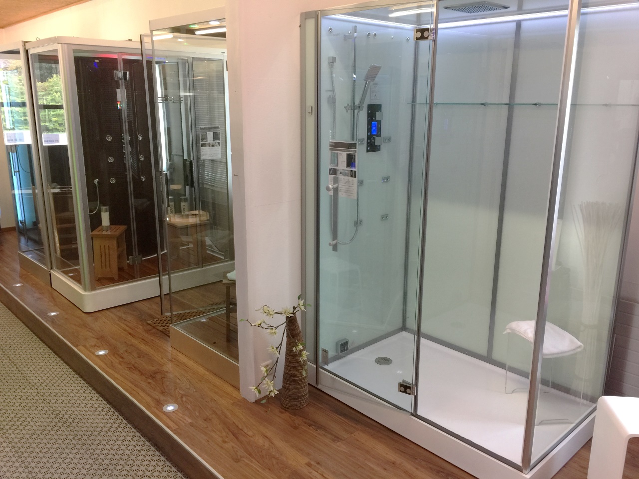 Wir haben immer einige Dampfduschen und Whirlwannen ausgestellt und können diese auch in Betrieb zeigen. Ebenso finden Sie eine Vielzahl unserer Heizkörper ausgestellt, neben Holzbadewanne, Wanne mit Tür, Fertigduschen, Infrarotkabinen, Badmöbel, Armaturen und Duschtrennwänden.