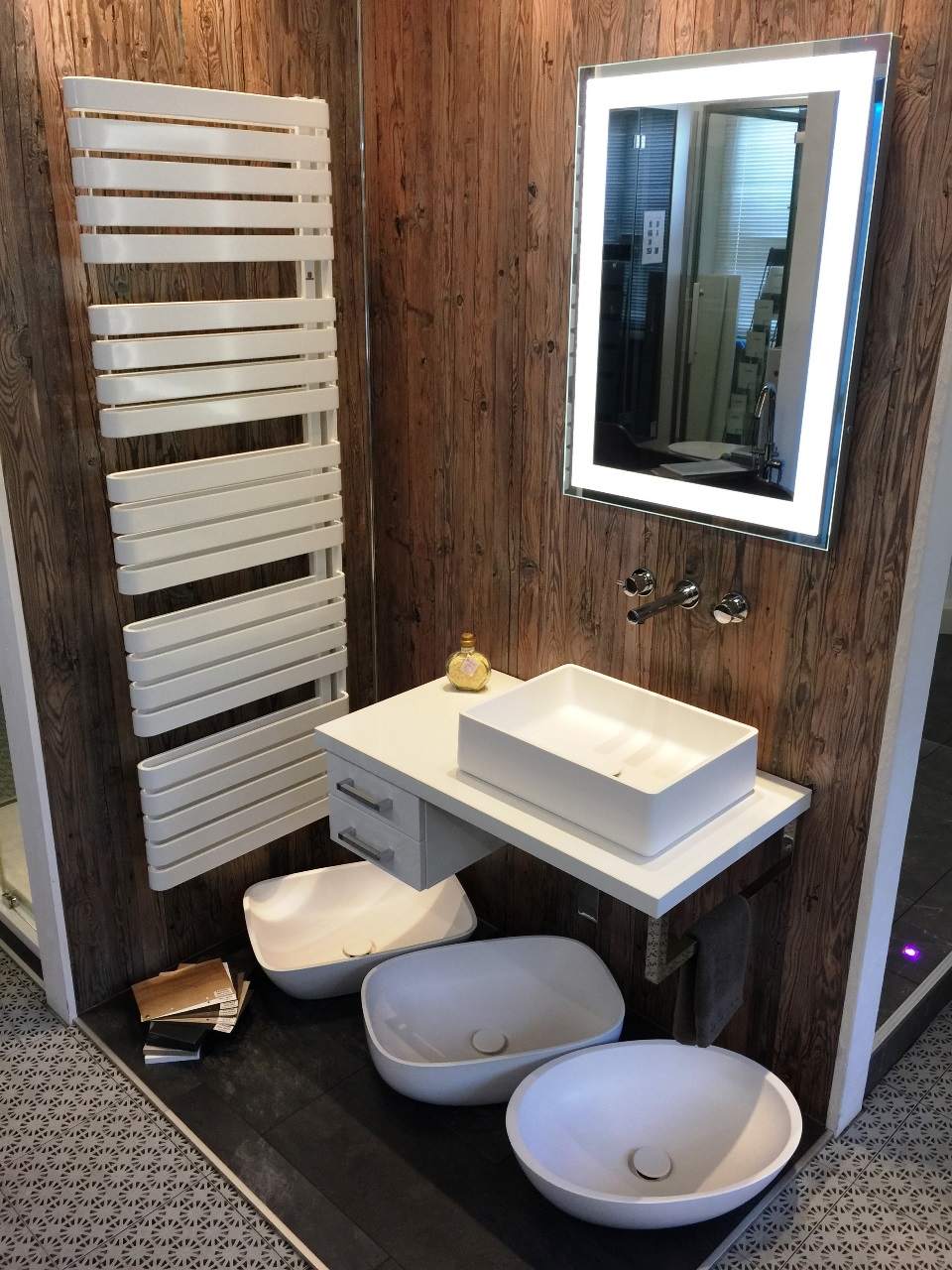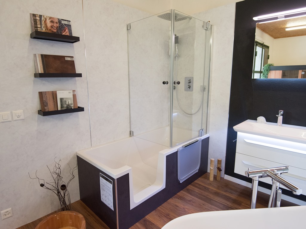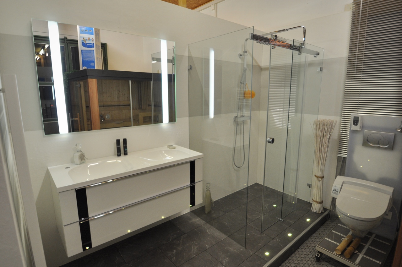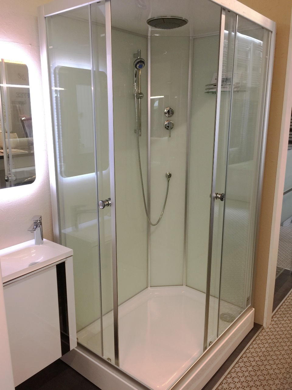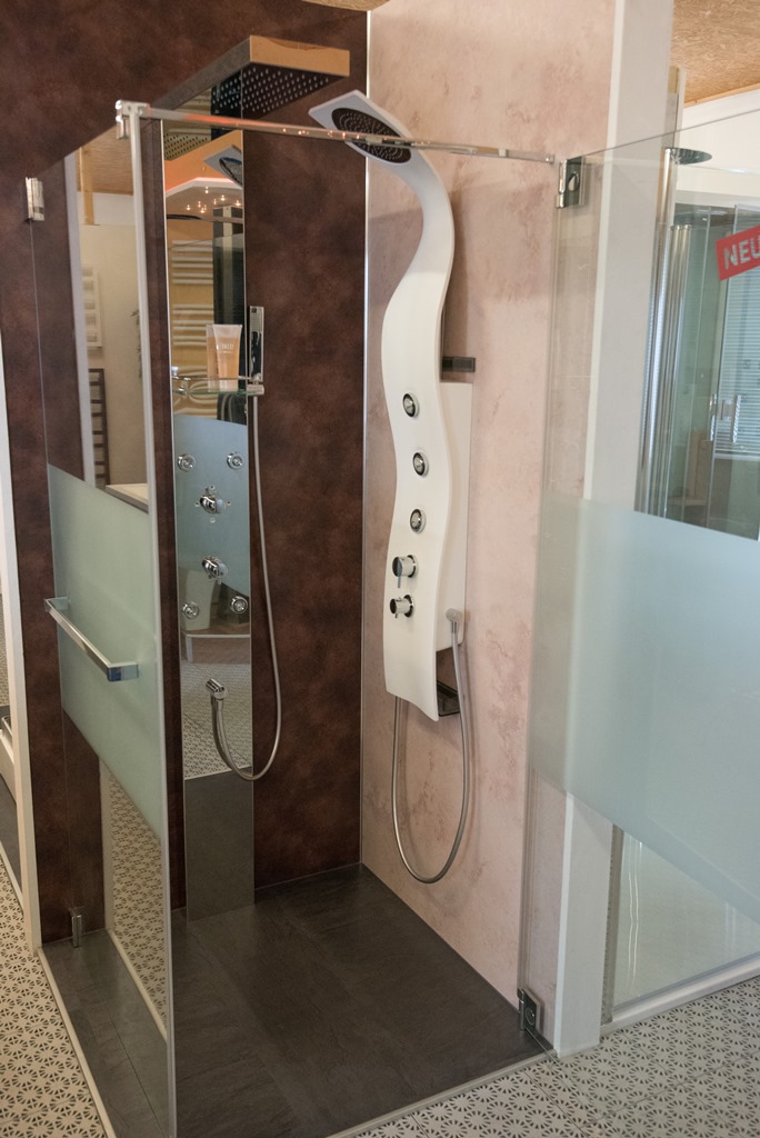 Wir haben immer einige Dampfduschen und Whirlwannen ausgestellt und können diese auch in Betrieb zeigen. Ebenso finden Sie eine Vielzahl unserer Heizkörper ausgestellt, neben Holzbadewanne, Wanne mit Tür, Fertigduschen, Infrarotkabinen, Badmöbel, Armaturen und Duschtrennwänden.